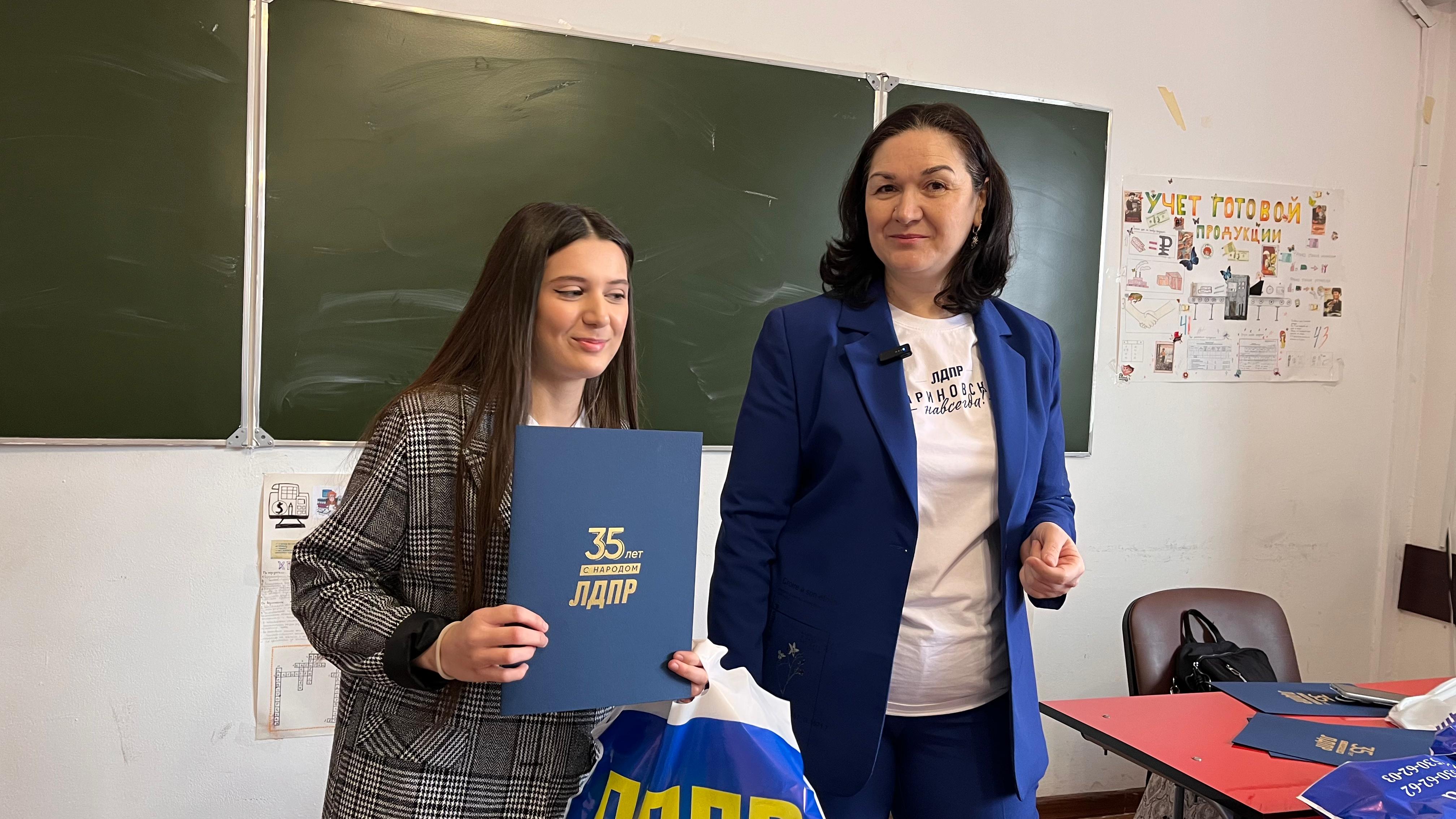 Заключением встречи стало награждение студентов колледжа. Почетными грамотами ЛДПР были отмечены отличники учебы: Сафина Аркалаева, Уммукусум Ибнугаджарова, Рукият Каратова, Париза Магомедрасулова, Биги Наврузова, Марьям Сулебанова, Муминат Юнусова.
