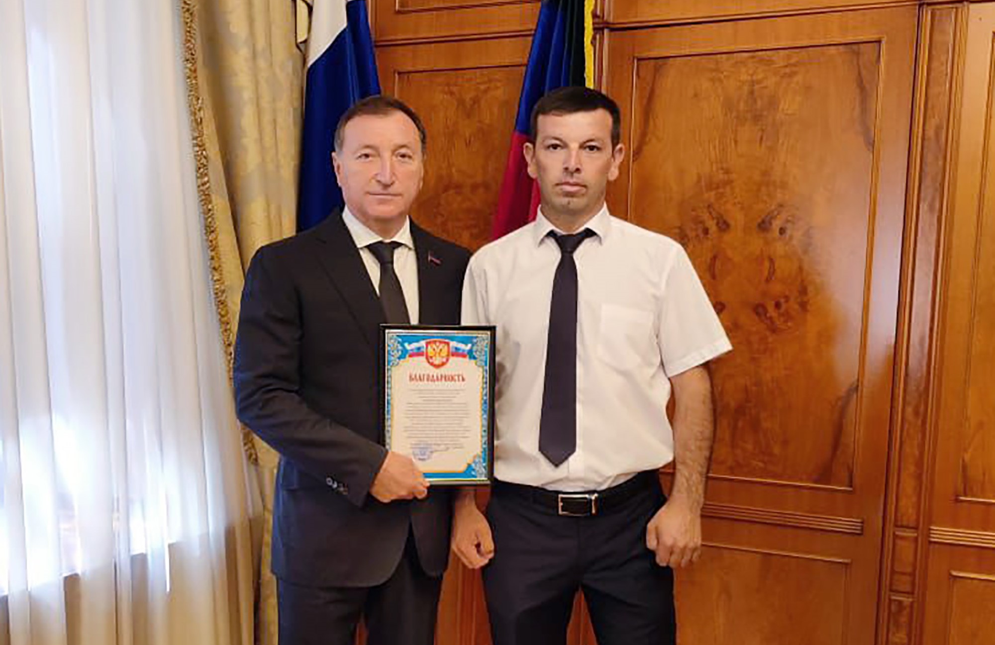 МАХАЧКАЛА, 29 июня – РИА «Дагестан». Депутат Народного Собрания, Доброволец, участник специальной военной операции Расим Гаджиагаев вручил Председателю Народного Собрания Зауру Аскендерову Благодарность от командира воинской части, гвардии полковника Сергея Шумейко за оказанную помощь в условиях проведения специальной военной операции на территории Запорожской области. Об этом информагентству сообщили в пресс-службе НС РД.