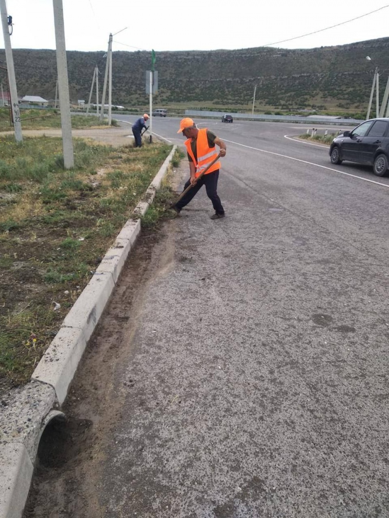 В эти дни данные работы идут на автомобильной дороге Манас-Сергокала-Первомайское. Рабочие сметают мусор, зачищают наносный грунт.