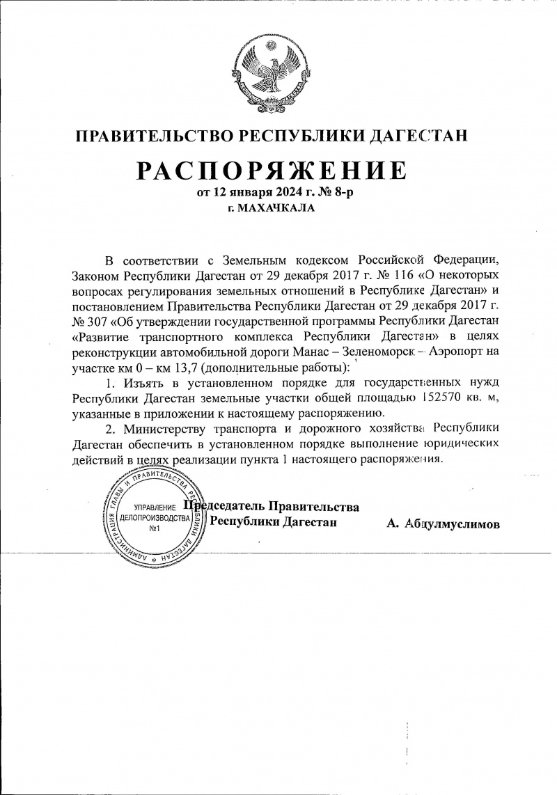 Власти Дагестана намерены изъять 67 земельных участков для реконструкции автомобильной дороги Манас – Зеленоморск- Аэропорт на участке 0 км - км 13,7.